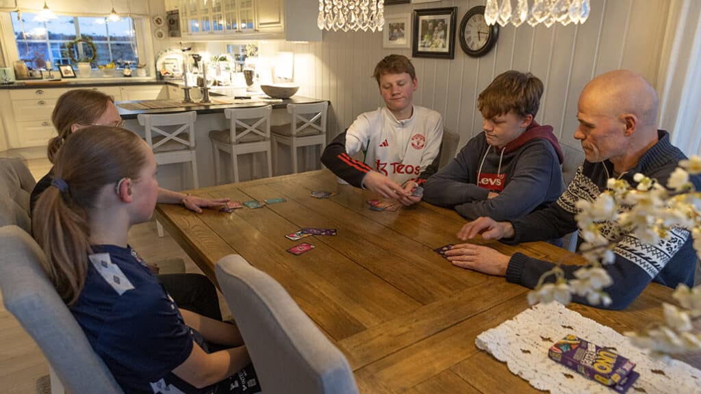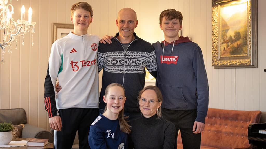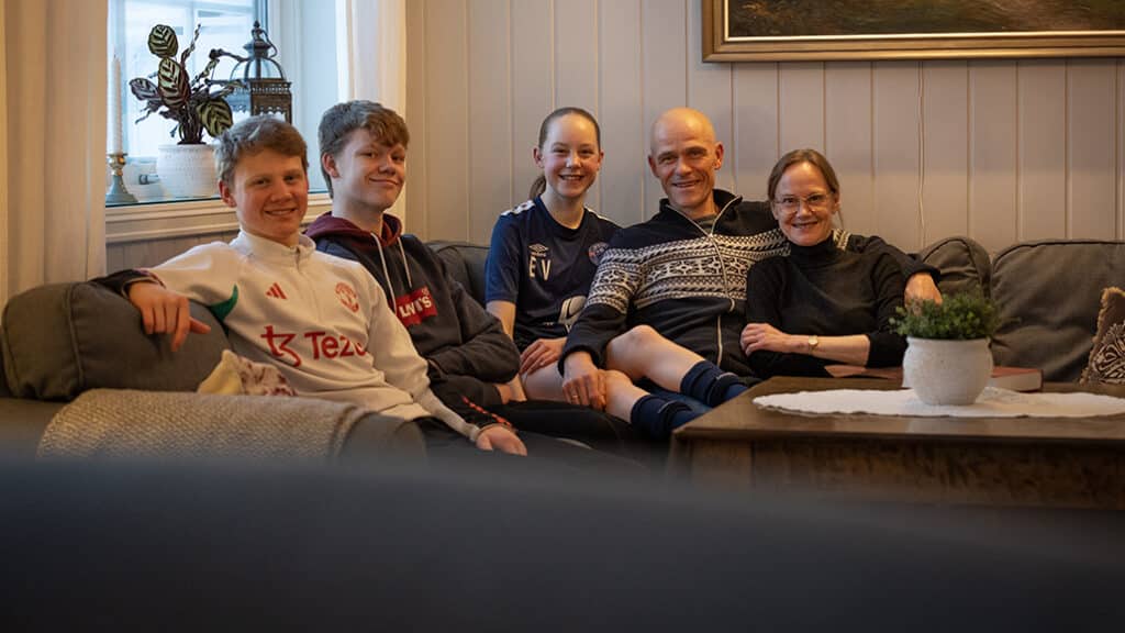Tre av seks barn bur framleis heime, og tre har flytta ut. Alle har erfaringar med å leve med nedsett høyrsel. Openheit og engasjement pregar familien, som gjerne deler erfaringane sine om nedsett høyrsel og skule.