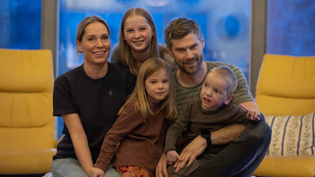 De har bygd om boligen, som nå er spesialtilpasset. Alf har hjemmebaserte tjenester 24 timer i døgnet de fleste ukedagene. Uten denne avlastningen hadde friheten og mulighetene vært enda mer begrenset for den aktive familien på fem. Hjemme bruker de E-podden i kombinasjon med kroppsspråk som kommunikasjon.