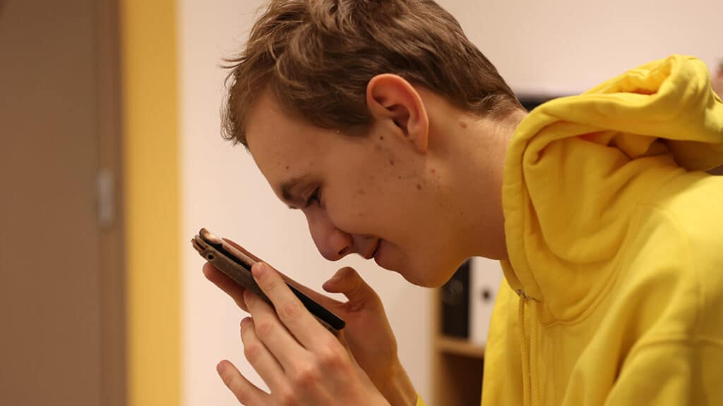 – For meg var det en terskel å komme over for å begynne å gå med hvit stokk, trene på mobilitetsruter og lære punktskrift. Jeg ble minnet om en tilstand jeg lenge håpet ikke skulle forverre seg, forklarer den unge gutten.