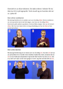 - Oversett til tegnspråk. Gjør gjerne opptak for å analysere teksten etterpå.