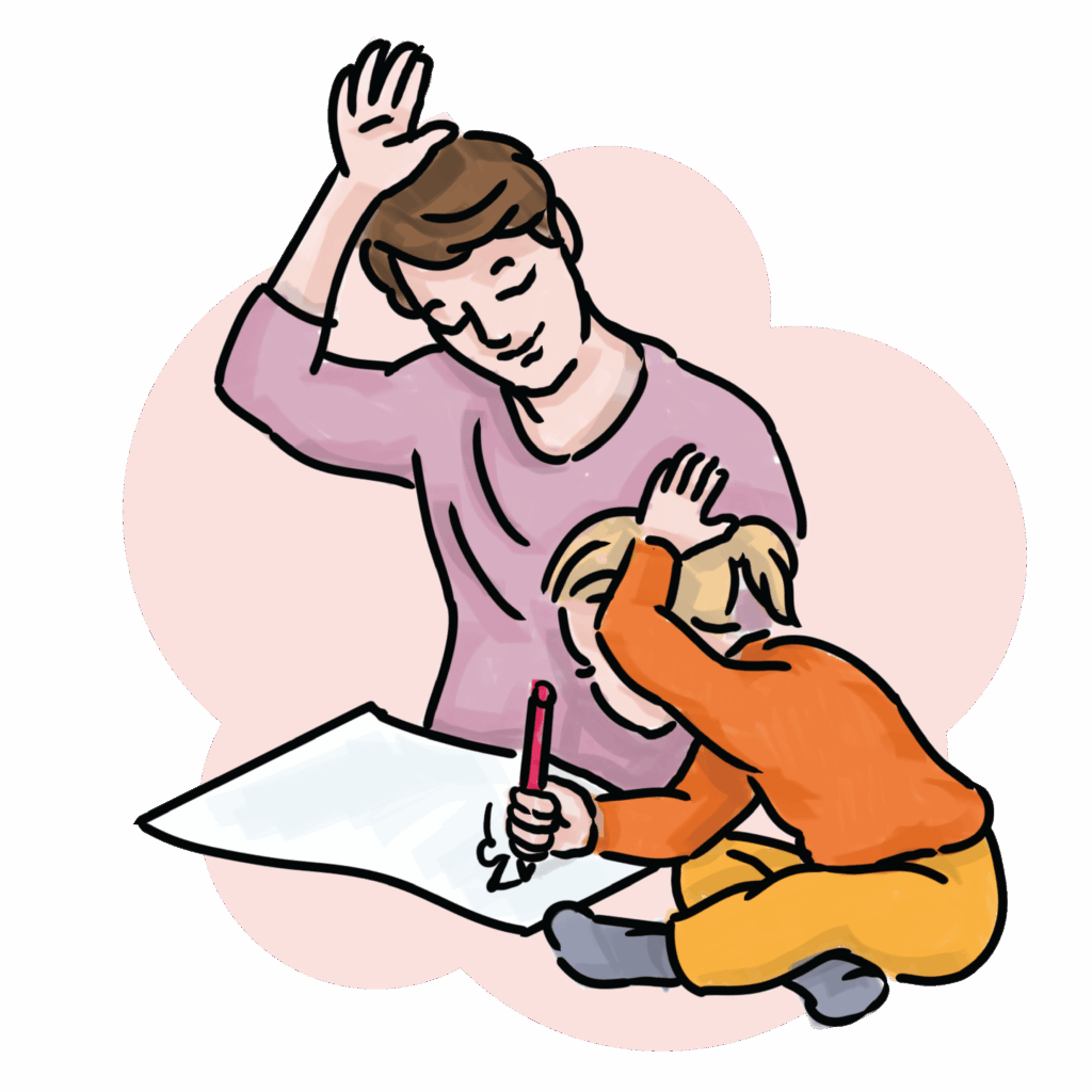 Voksen som viser hvordan man rekker opp hånden til et lite barn